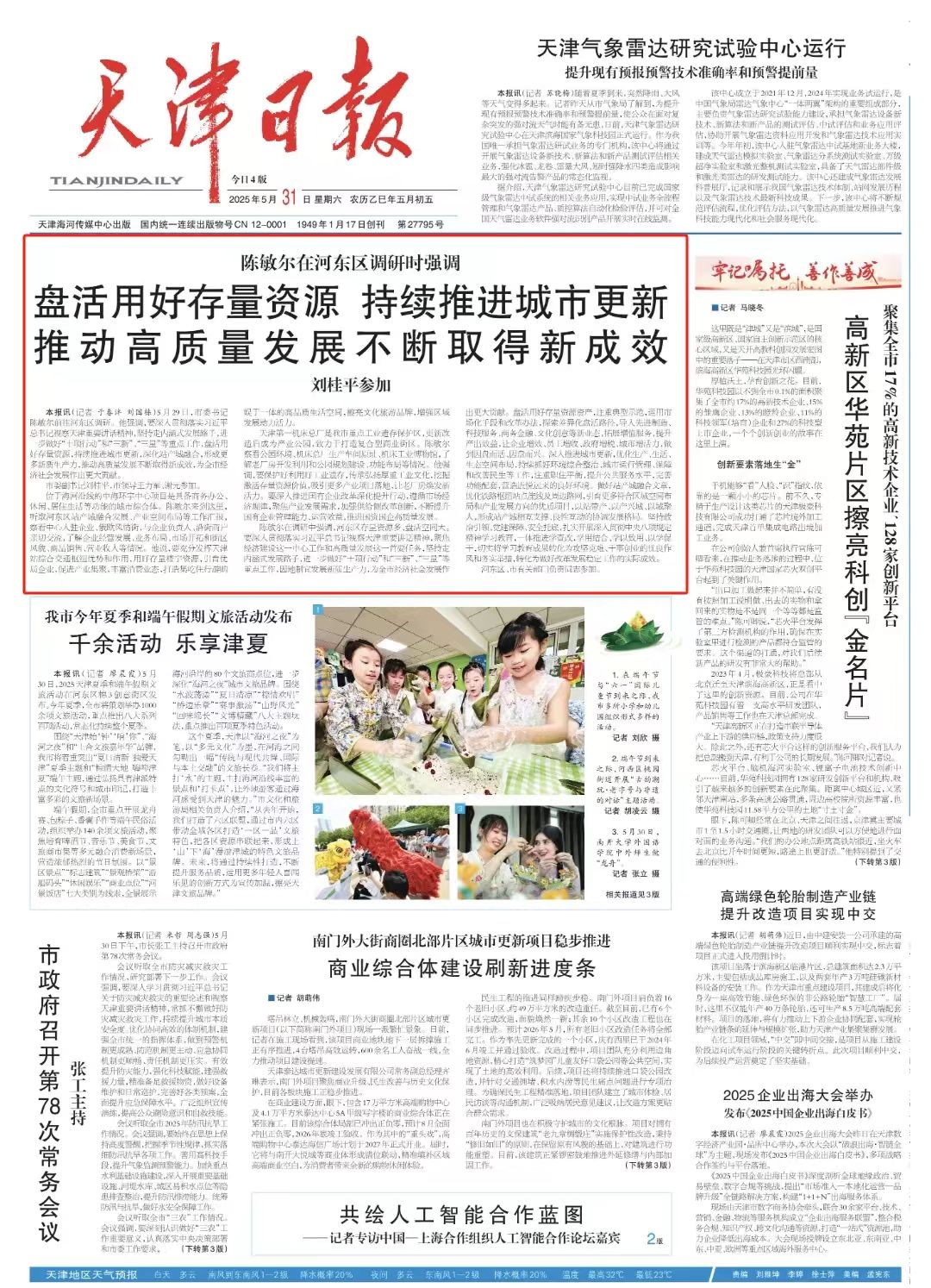 5月29日,天津市委书记陈敏尔到天津918博天堂承建的天津第一机床总厂城市更新项目调研,调研时强调,盘活用好存量资源,持续推进城市更新推动高质量发展不断取得新成效。天津电视台、天津广播、《天津日报》等多家媒体广泛报道。